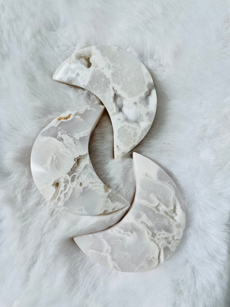 Druzy snow agate moons